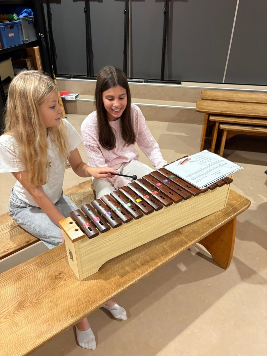 Om de week starten we op maandag ochtend met muziekles van juf Marieken. De afgelopen keer dat we dat hadden, mochten we met xylofoons aan het werk. In tweetallen proberen we het liedje dan aan te leren.