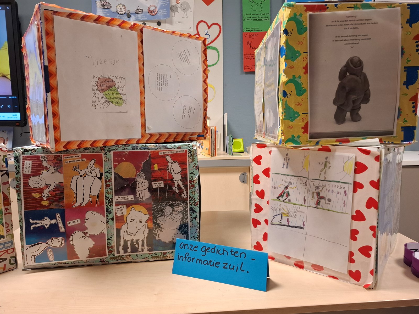 Het was een mooi en rijk thema, waar we vanaf de zomervakantie aan hebben gewerkt...en nog was niet alles af. We gaan gewoon volgende week nog de laatste activiteiten afronden. Met name het voorlezen door kinderen aan de klas. Het filmpje met de kinderen die een gedicht voorlezen kwam niet tot z ’n recht met zoveel mensen ( had ik ook wel een beetje vantevoren bedacht..) ik ga proberen het filmpje in de ouderapp te zetten.