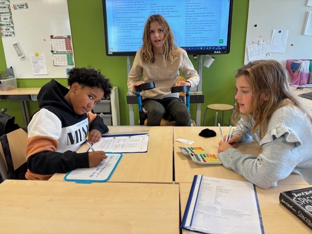 Ook hebben we veel stilgestaan bij vrijwilligerswerk. Wat is een vrijwilliger? Waarom is een vrijwilliger belangrijk? Waarom kunnen we niet zonder vrijwilligers? Zo hebben ze in groepjes verschillende situaties besproken waar vrijwilligers zijn (denk eens aan de trainers bij het voetballen, ouderhulp op school, voorleesvrijwilligers in de bibliotheek, opbouwers bij een dorpsfeest, etc.) en uiteindelijk aan elkaar gepresenteerd. Iedere situatie met een vrijwilliger is namelijk anders. We hebben vooral gelet op de argumenten die de groepjes gaven waarom een vrijwilliger belangrijk is in die situatie.