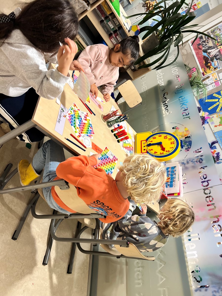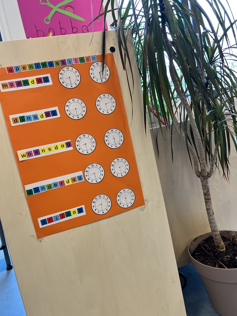 Tijdens rekenen leerden we klokkijken op hele en halve uren. Dat kwam goed van pas bij het maken van openingstijden voor onze kapsalon, want klanten willen natuurlijk niet voor een dichte deur staan!