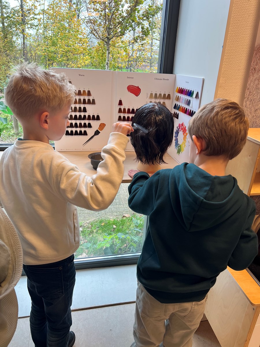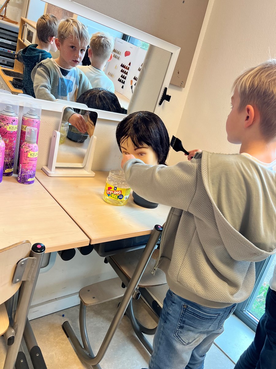 In de kring vertelden we over onze eigen kapperservaringen: wie is er wel eens naar de kapper geweest en wat deed de kapper precies? Daarna hebben we opgeschreven wat we al weten over het kappersvak en dit met elkaar gedeeld. In tweetallen zijn we in de boeken gedoken en hebben we vragen opgeschreven die we verder willen onderzoeken en die we straks aan een échte kapper willen stellen!