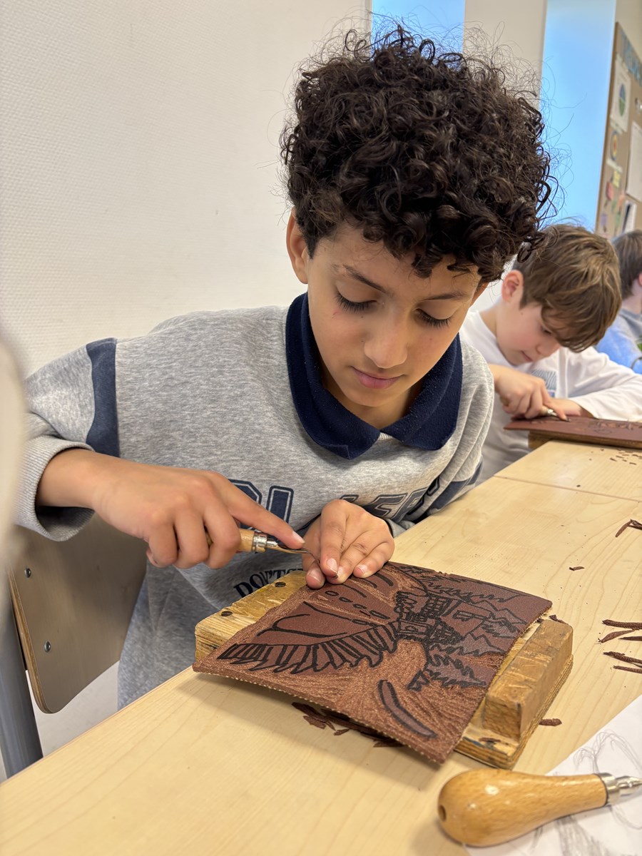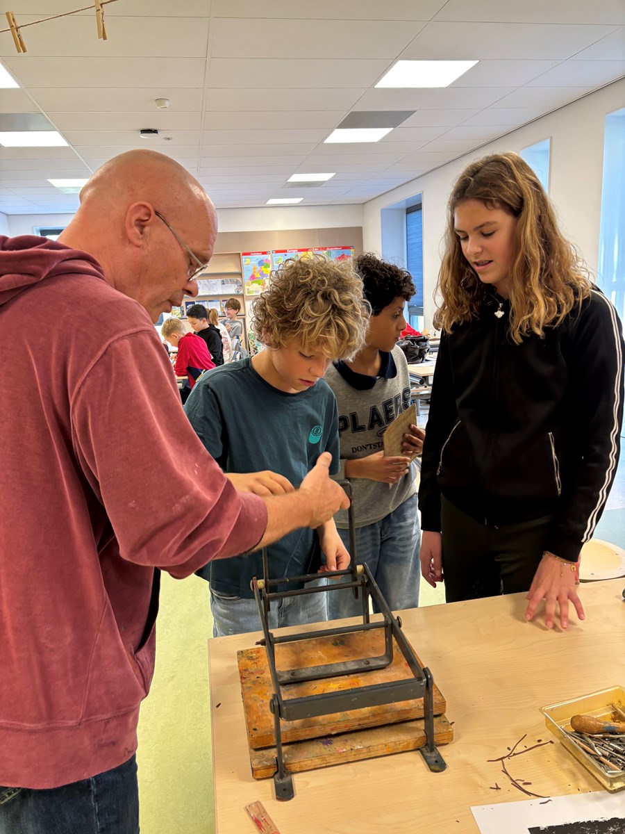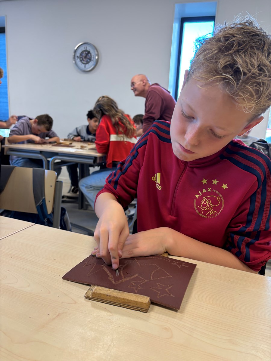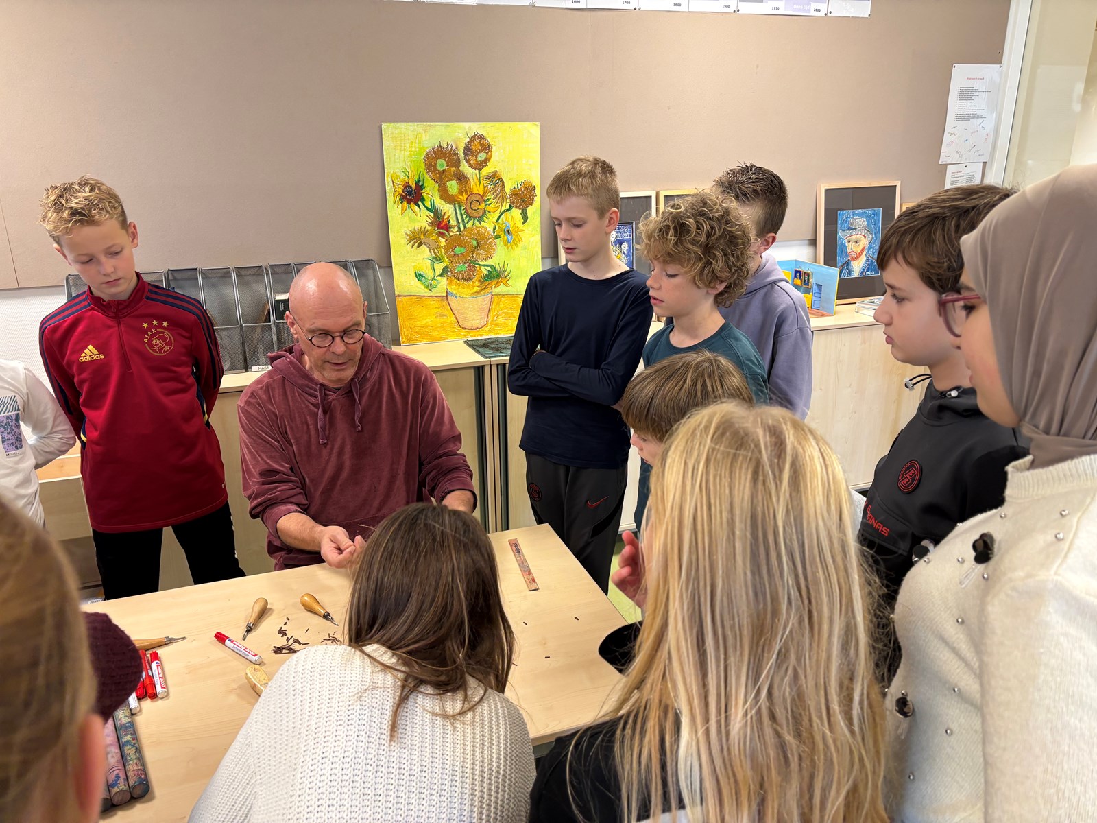 Er hing een ontspannen sfeertje in de klas en iedereen was lekker aan het gutsen. Soms even een bot mesje, waardoor het heel zwaar was, maar die konden snel vervangen worden. Veel kinderen vonden het geweldig!