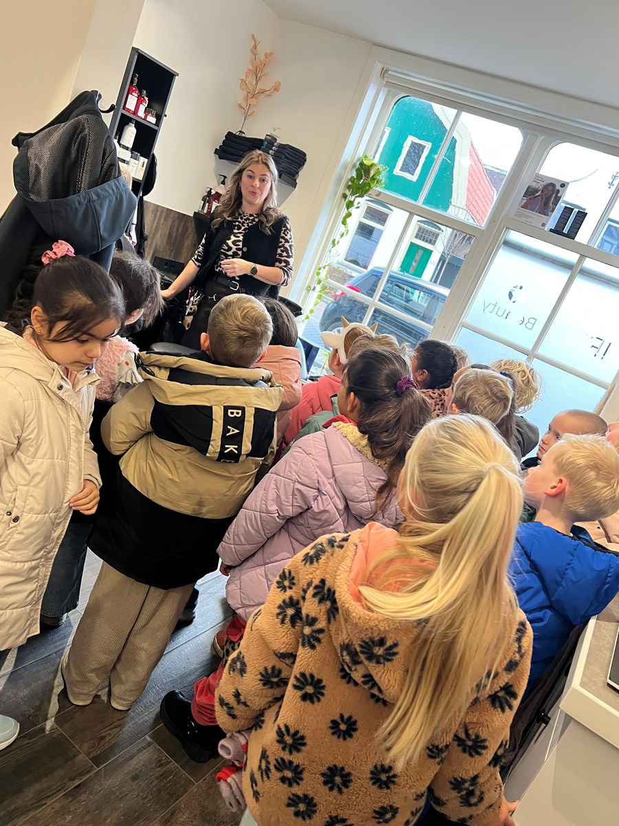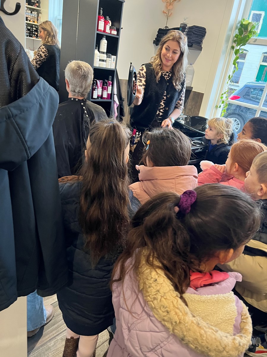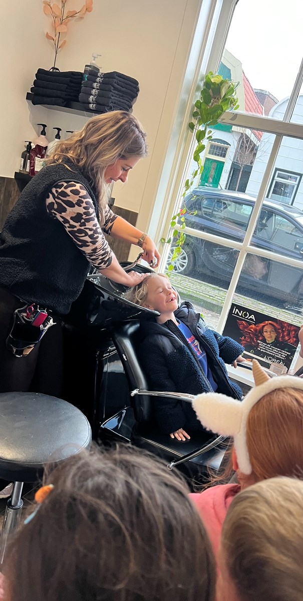 We zijn met de klas op bezoek geweest bij Iris Beauty & Hair, de kapsalon van de moeder van Roos. Het was ontzettend leuk om van dichtbij te zien hoe een kapsalon eruitziet, hoe een kapper te werk gaat en welke materialen er worden gebruikt. Als kers op de taart mochten we zelfs meekijken bij het knippen van een échte klant! Hoe gaaf is dat!