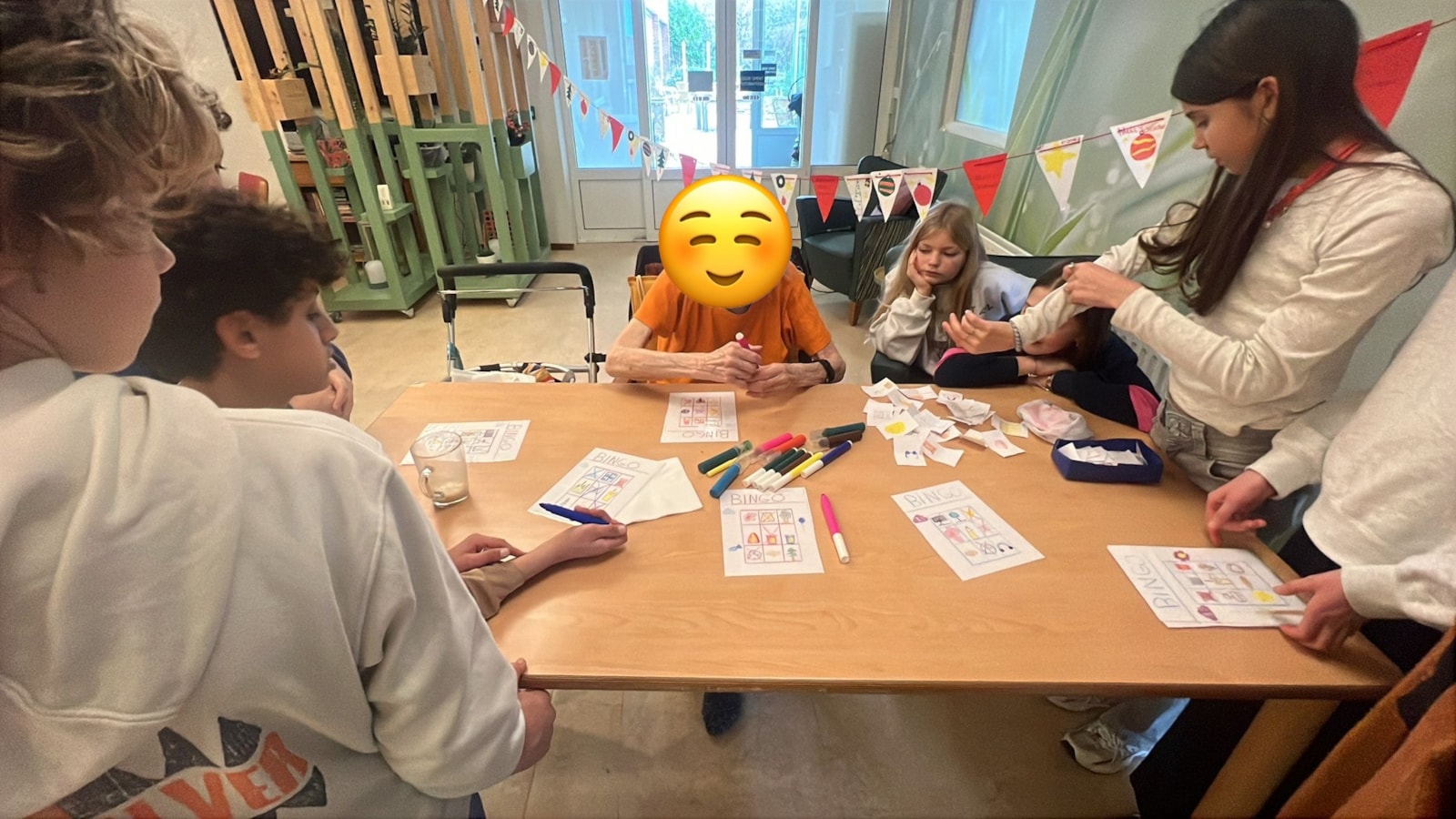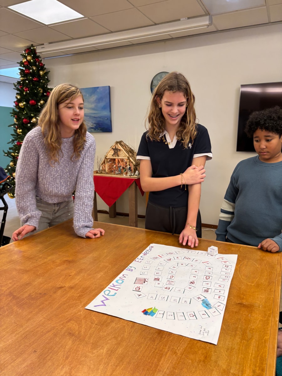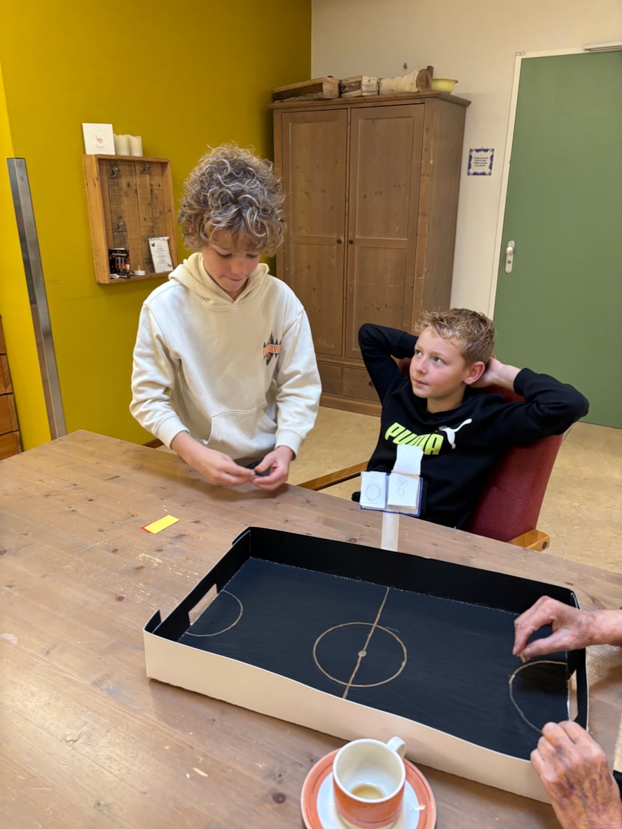 De afgelopen weken hebben wij verschillende spellen in de klas ontworpen en gemaakt. Spellen die vanuit een rolstoel te spelen zijn. Zo zijn er een ‘eendenbord’ (soort ganzenbord), 2 schuifspellen, 2 mik spellen met pittenzakjes en een bingo spel bedacht. Er is in de klas veel gesproken ouderen, eenzaamheid bij ouderen, vrijwilligers, hoe omgaan met, etc.