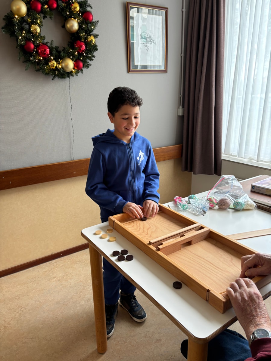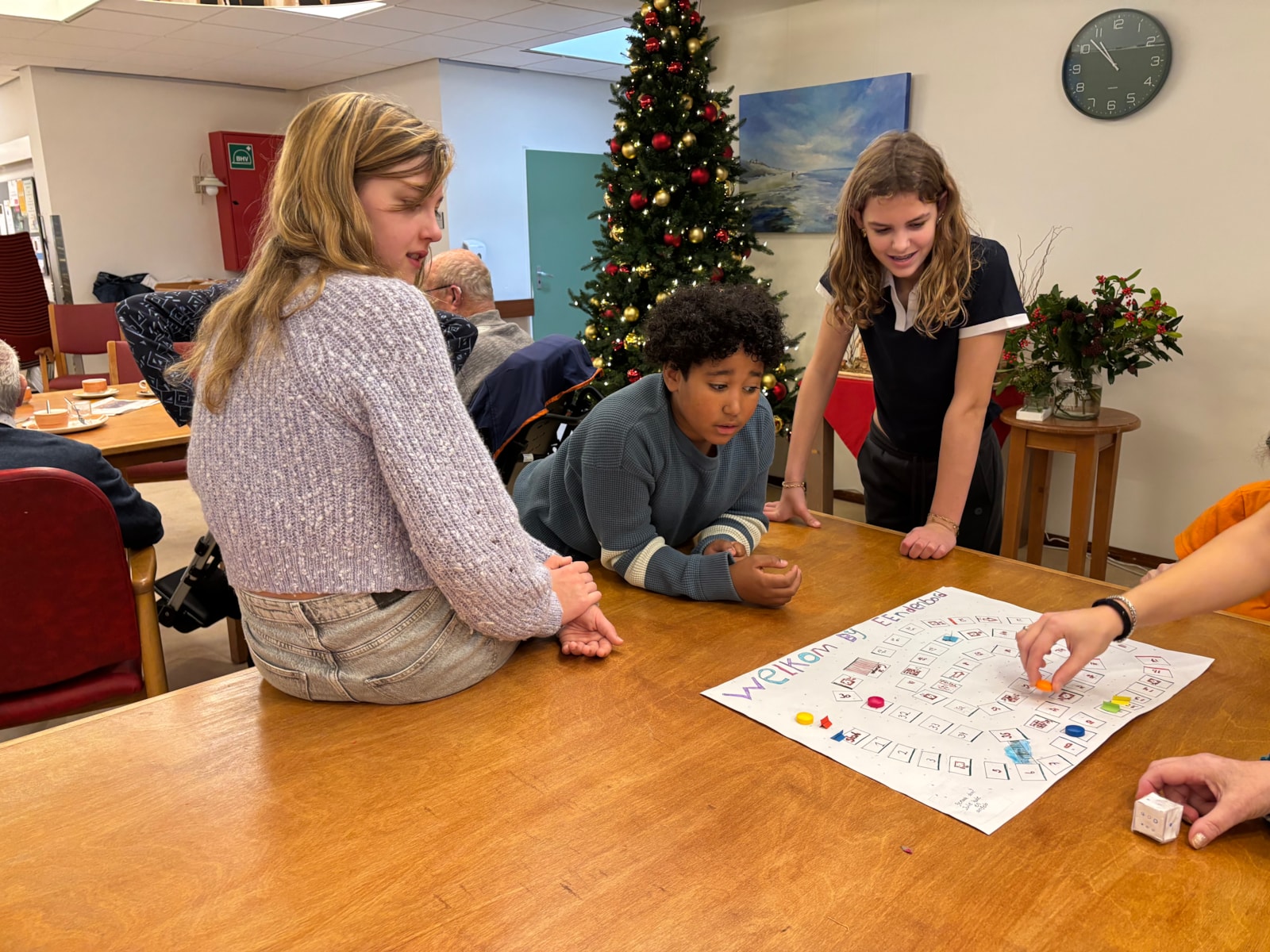 Een bewoner wilde graag sjoelen, dus ook de sjoelbak kwam nog even op tafel. Ook juf Bianca haar oma deed mee met de spelletjes.