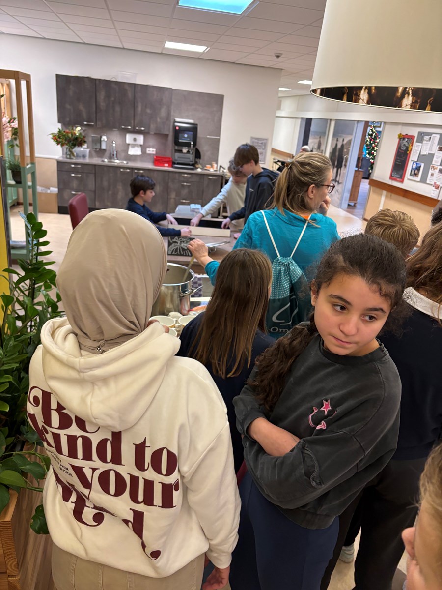 Fiene had iedereen voorzien van een lekker plakje zelf gebakken cake en aan het eind mochten we nog helpen met soep uitdelen.