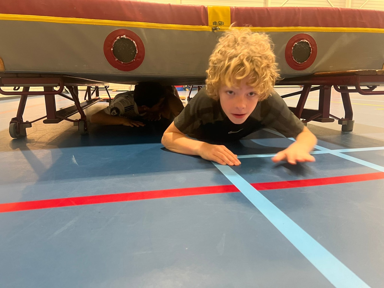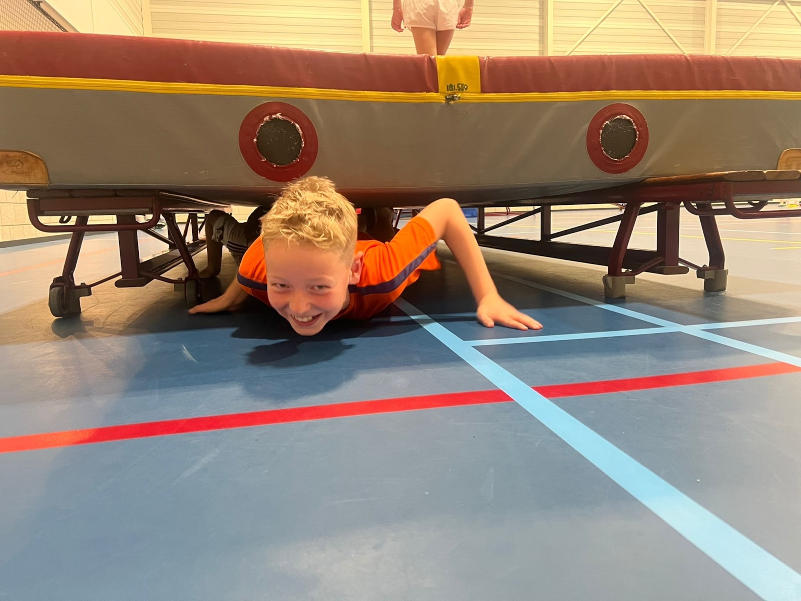 Woensdag hadden we een stormbaan bij de gymles die georganiseerd was door groep 6. Ook hartstikke leuk! Over van alles heen, maar ook onder de mat door. Het hield ons lekker bezig!