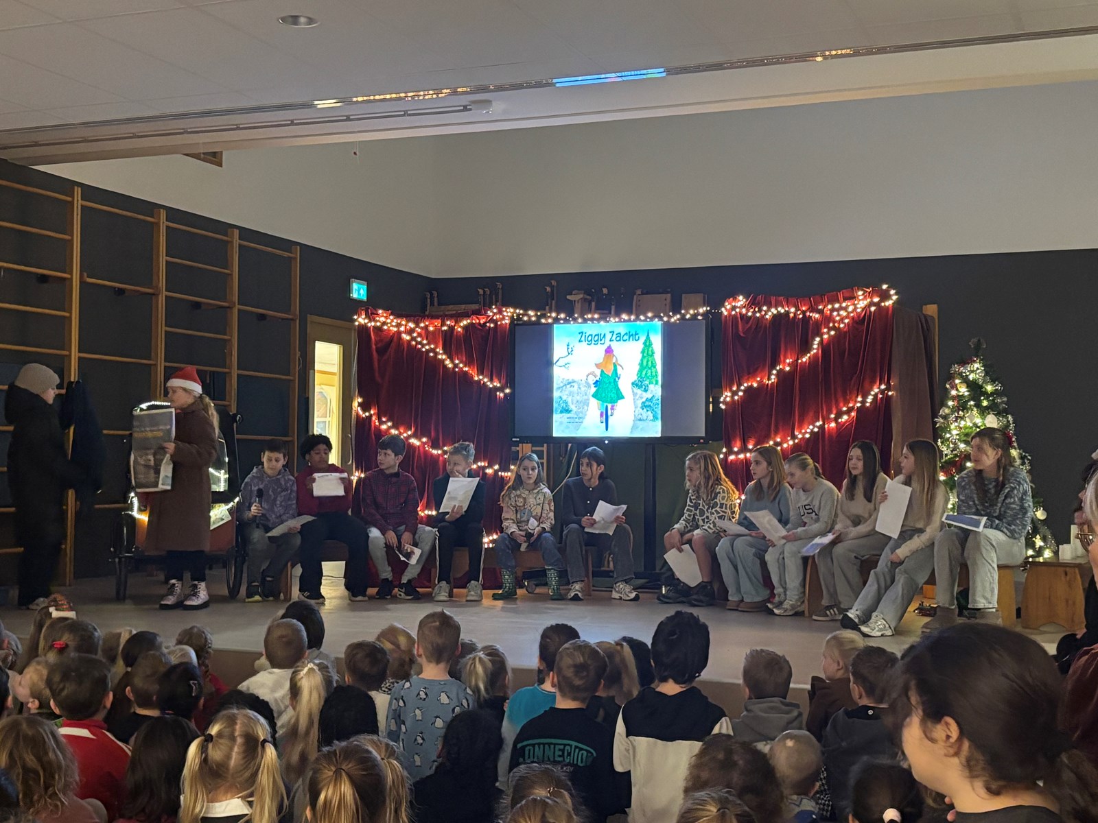 Donderdag begonnen we de dag samen met elkaar en hadden we de kerstviering. Van onze klas mochten er zes kinderen iets voorlezen van het verhaal. In de klas hebben we nog naar het kerstverhaal geluisterd en na de pauze hebben we kerstballen versierd met de wens: Wij wensen zachtheid voor iedereen.