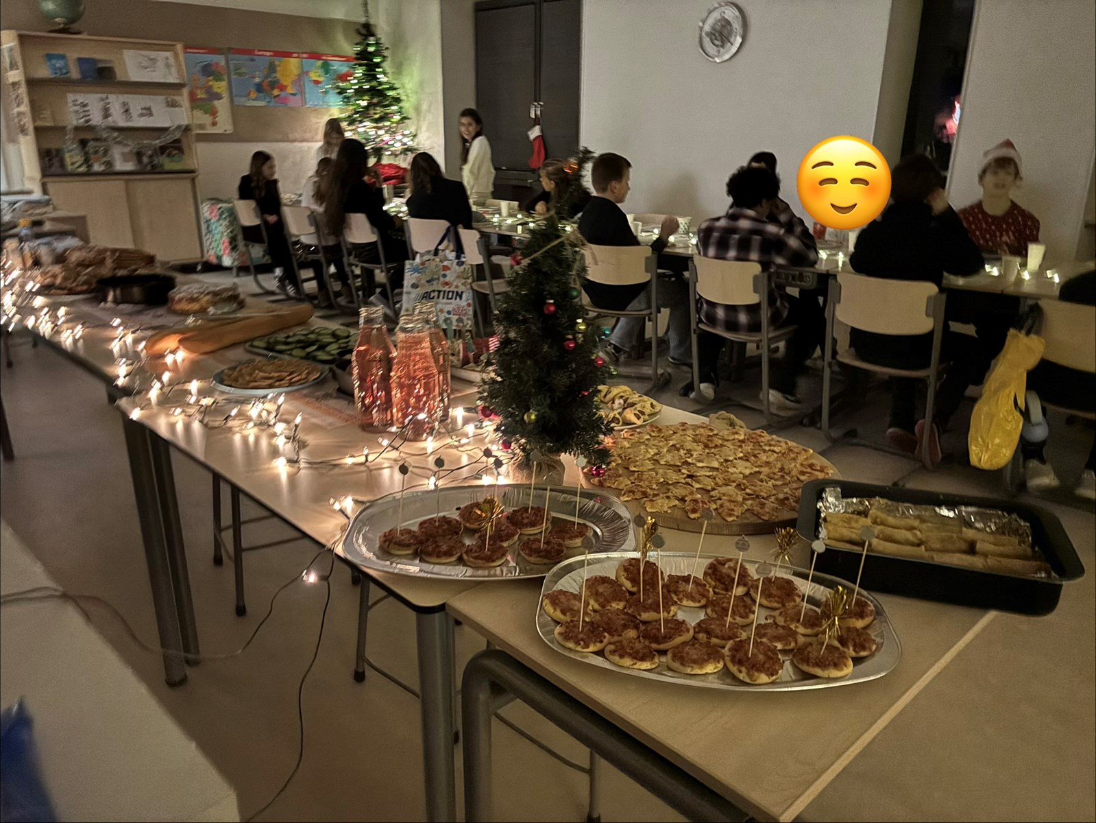 Met het kerstdiner was juf Noortje ook in de klas en hebben we heerlijk gegeten van al het lekkers dat was meegenomen.
