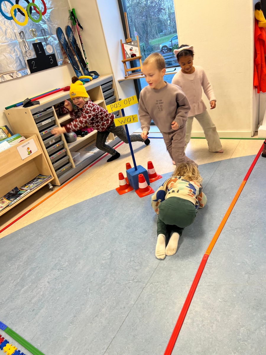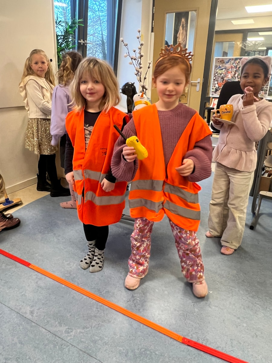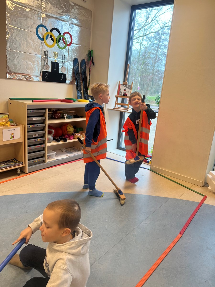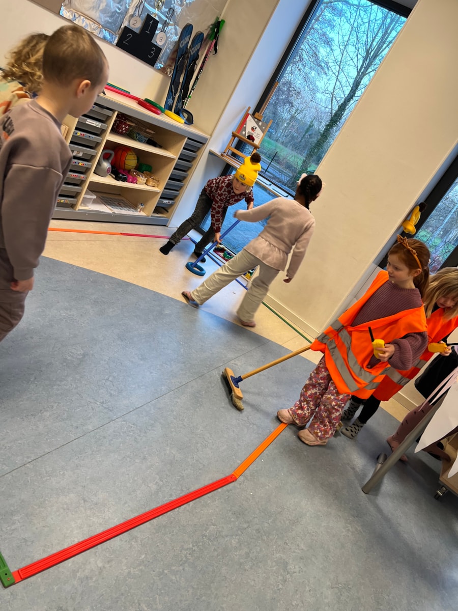Maar oh nee… er zat een gat in het ijs, oftewel een wak! Samen hebben we onderzocht hoe we dit probleem kunnen oplossen én voorkomen. We ontdekten dat daar ijsmeesters voor nodig zijn. Deze taak werd zeer serieus genomen: de ijsmeesters trekken hun werkhesje aan en boenen het ijs weer mooi glad en veilig.
