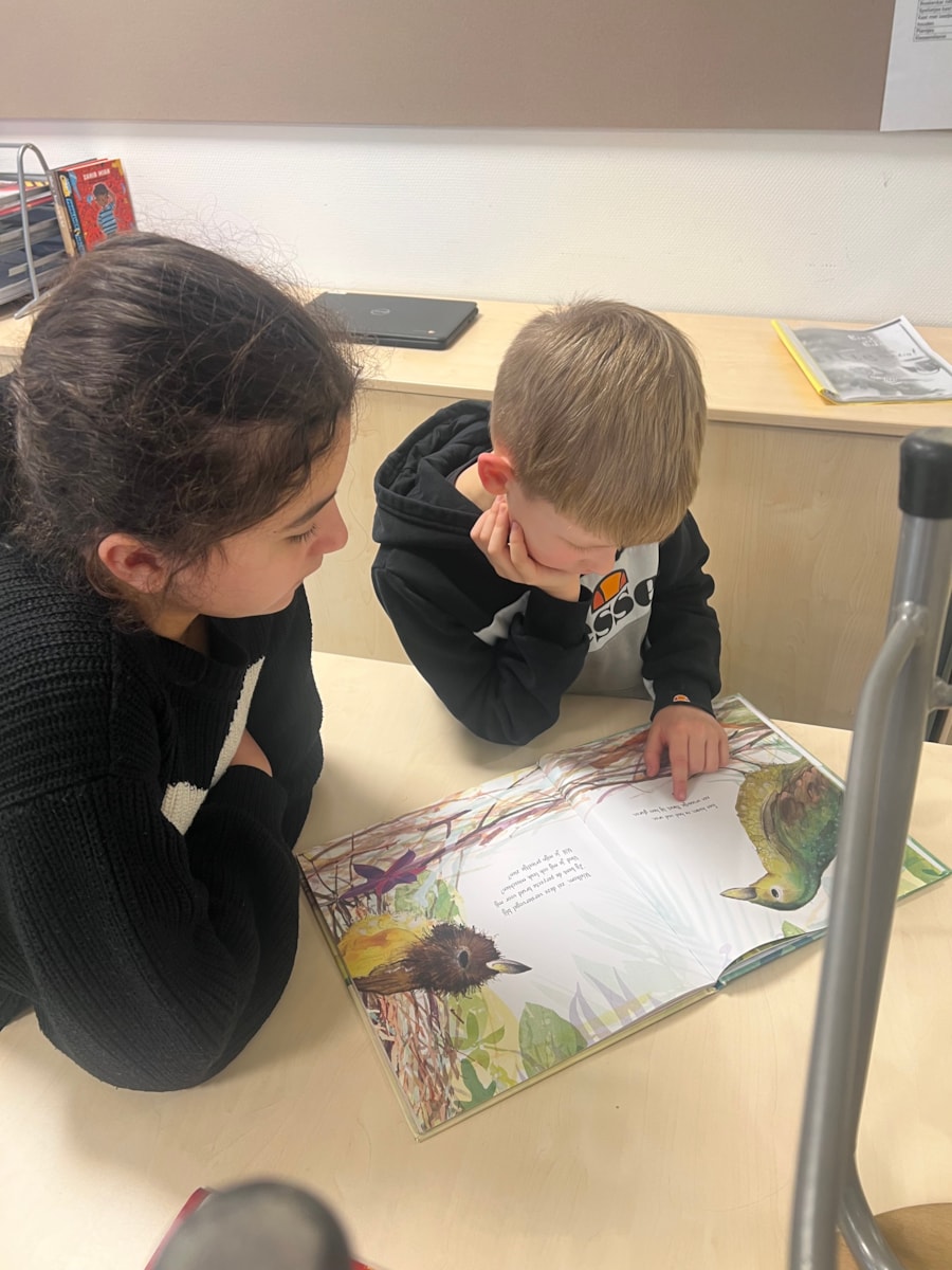 Vanaf nu lezen we elke vrijdag gezellig samen met een maatje uit groep 8. Vandaag was de eerste keer: dat was best een beetje spannend, maar wat was het mooi om te zien hoe fijn en enthousiast er samen gelezen werd!❤️