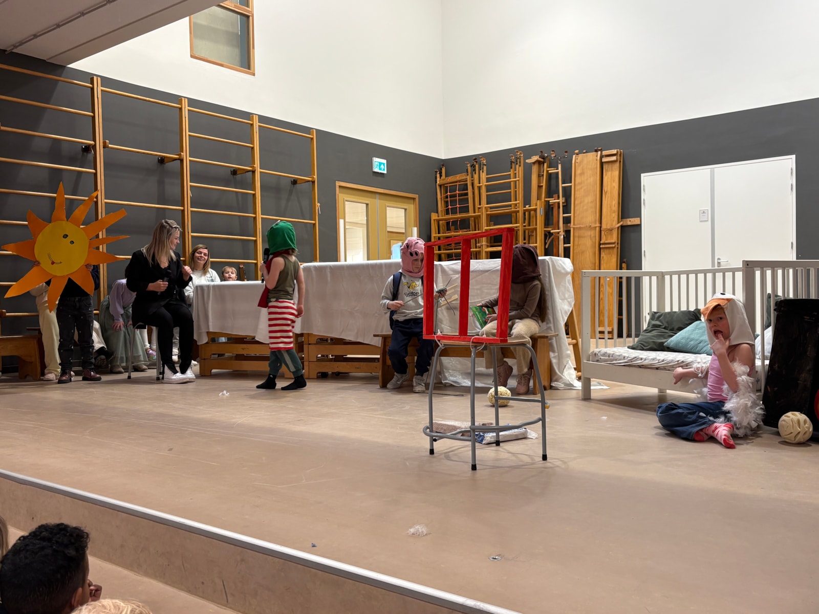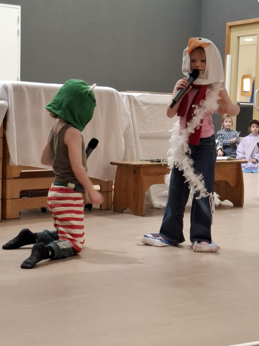 Wauw! Wat een kanjers! Daar stonden ze dan: de kinderen van groep 3 en 4 op het podium om een voorstelling te geven voor alle kinderen van De Fontein én voor alle papa’s, mama’s, opa’s, oma’s, broertjes en zusjes!